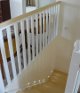Avoporras. Askelmat ja käsijohde lakattua koivua. Muissa osissa valkoinen maalaus. Lähtötolpissa koristepallot. |